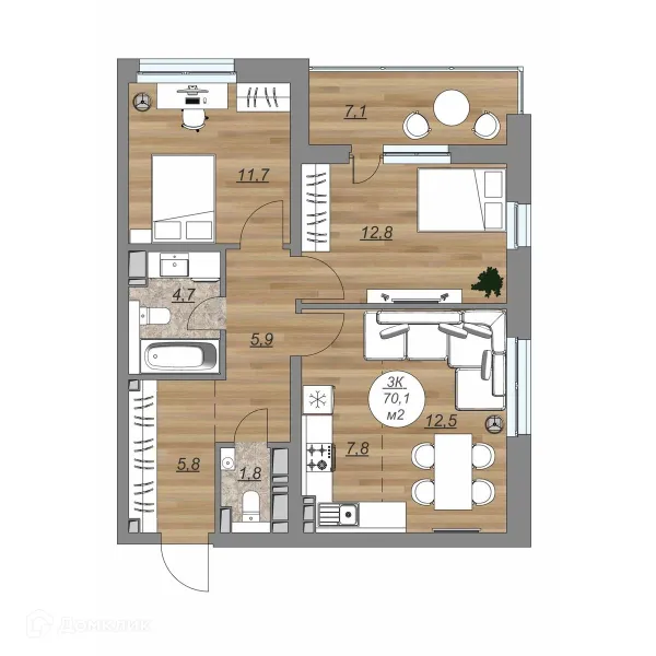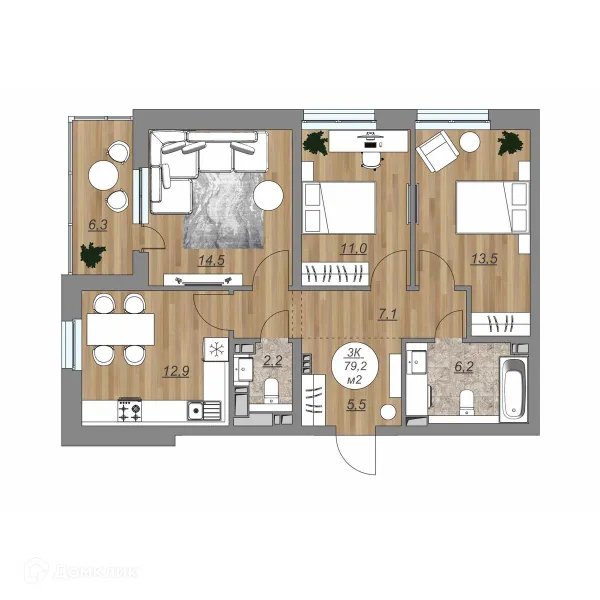 3 комн. квартира в Петрозаводске в ипотеку от 79 859 руб/месяц