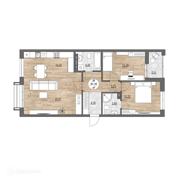 3 комн. квартира в Петрозаводске в ипотеку от 76 712 руб/месяц