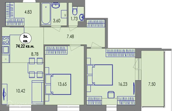 3 комн. квартира в Петрозаводске в ипотеку от 82 379 руб/месяц