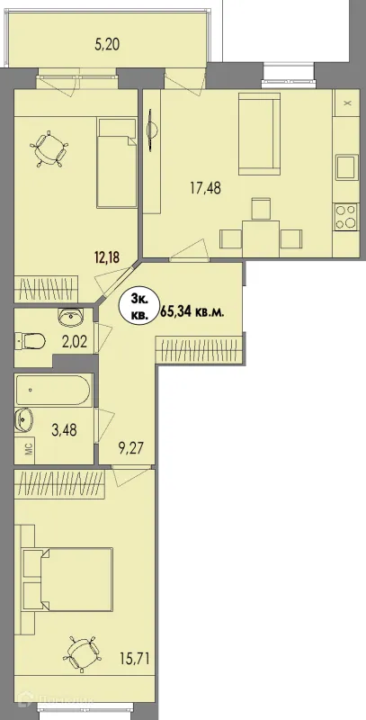 3 комн. квартира в Петрозаводске в ипотеку от 65 313 руб/месяц