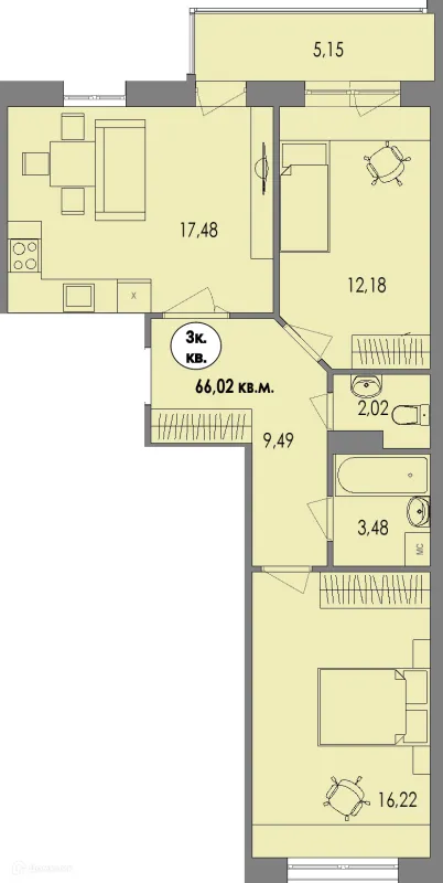3 комн. квартира в Петрозаводске в ипотеку от 66 897 руб/месяц