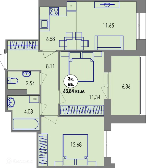 3 комн. квартира в Петрозаводске в ипотеку от 84 971 руб/месяц