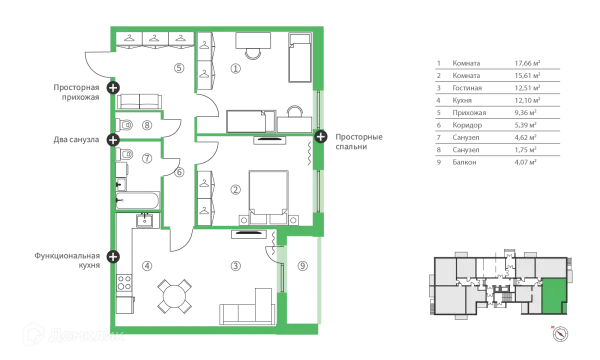 2 комн. квартира в Петрозаводске в ипотеку от 65 241 руб/месяц