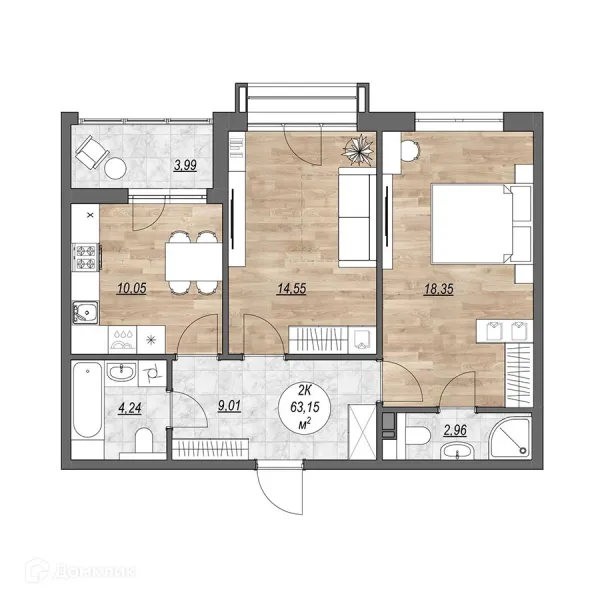 2 комн. квартира в Петрозаводске в ипотеку от 60 848 руб/месяц