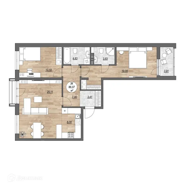 3 комн. квартира в Петрозаводске в ипотеку от 99 733 руб/месяц